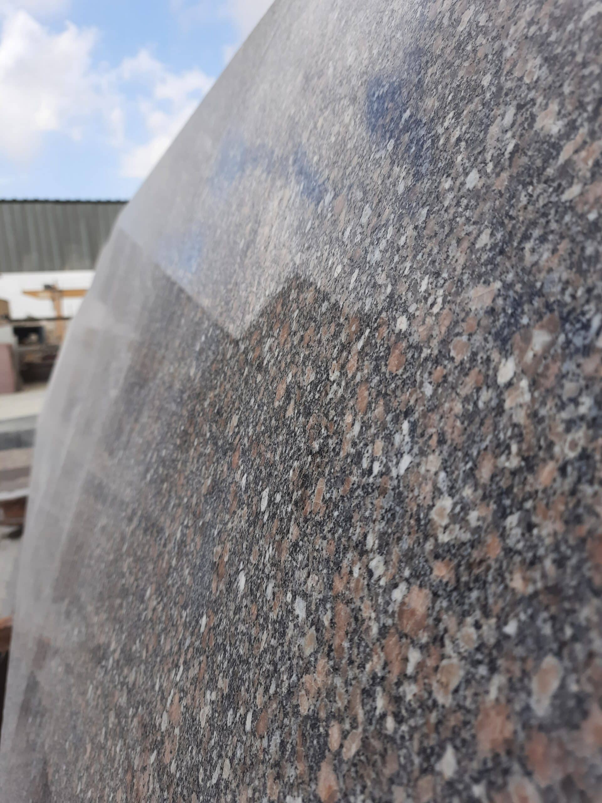 The polished finish of Gondola highlights its luxurious appearance, with the rose speckles providing an elegant contrast to the grey background. For those looking for alternative textures, the flamed finish offers a slip-resistant surface perfect for outdoor areas, while the sandblasted finish gives a more rustic and tactile feel. These various finishing options ensure that Gondola Granite retains its beauty and resilience in both residential and commercial applications over time.